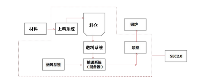 工艺系统主要包括:脱硝系统供货共分为四大块: A、送风系统; B、储料及送料系统; C、上料系统; D、输送系统。